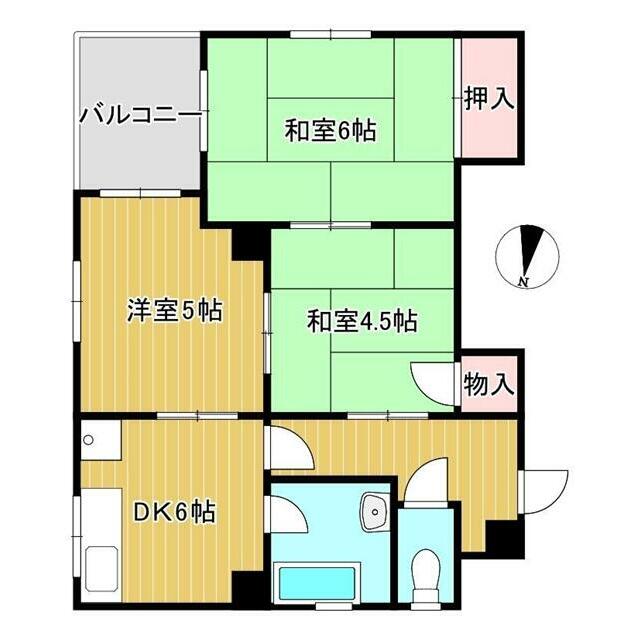 | 間取り | 3DK(和6 洋6 和4.5 DK6) | 主要採光面 | 南 |